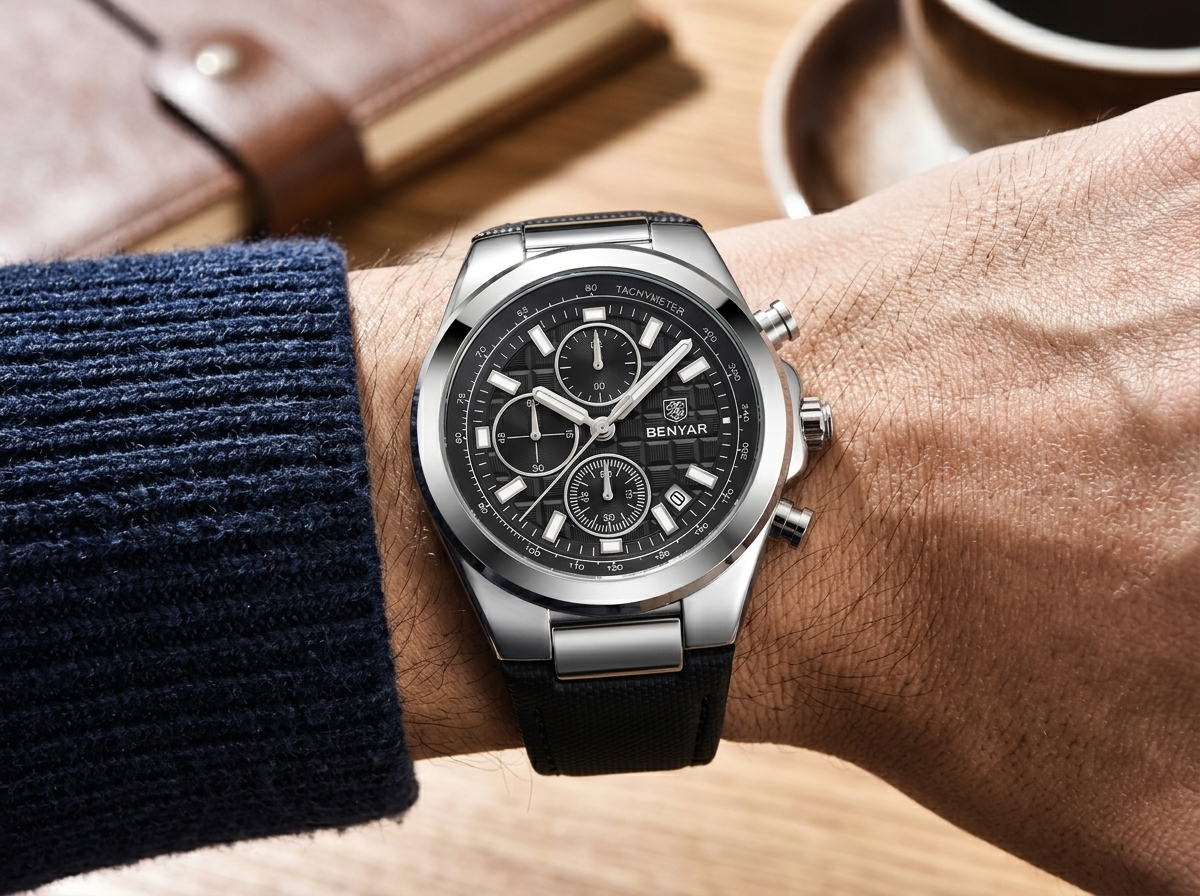 Affirmez votre style avec la montre chronographe BENYAR, un accessoire sophistiqué qui allie performance et élégance moderne. Son design audacieux et ses fonctions précises en font le compagnon idéal de chaque aventure.