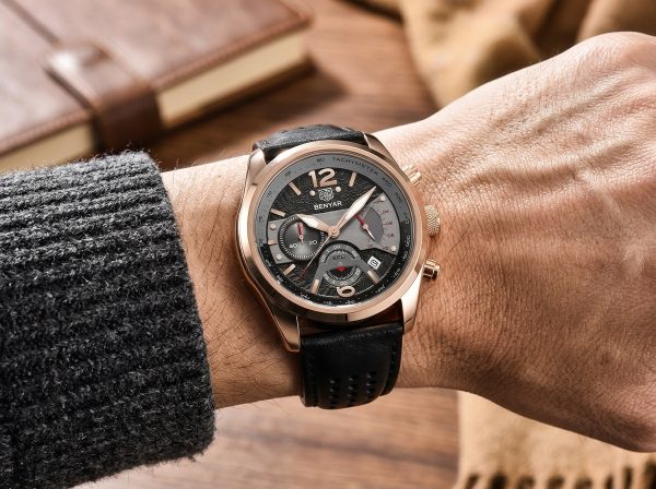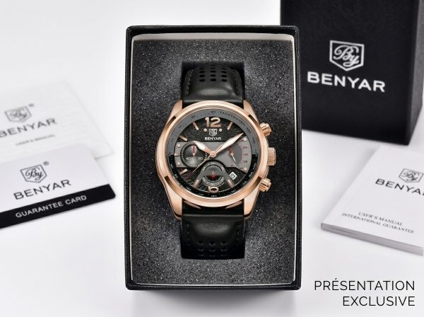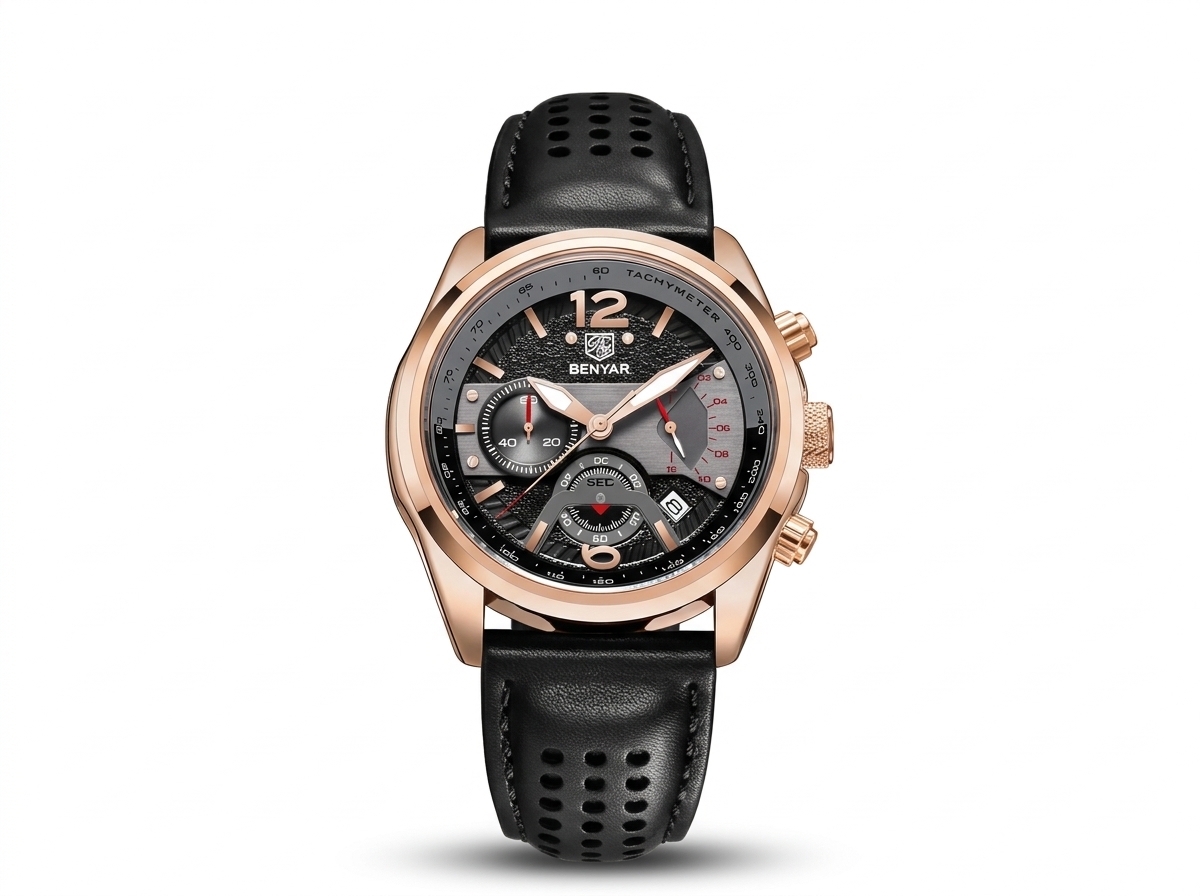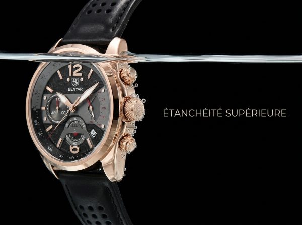 Élevez votre style avec l’élégance audacieuse de cette montre chronographe. Son cadran multifonction et son boîtier raffiné en or rose en font un accessoire incontournable pour toute occasion.