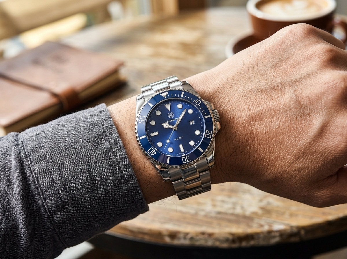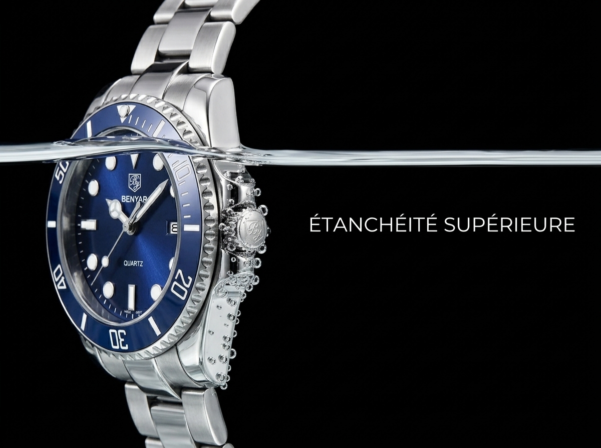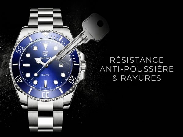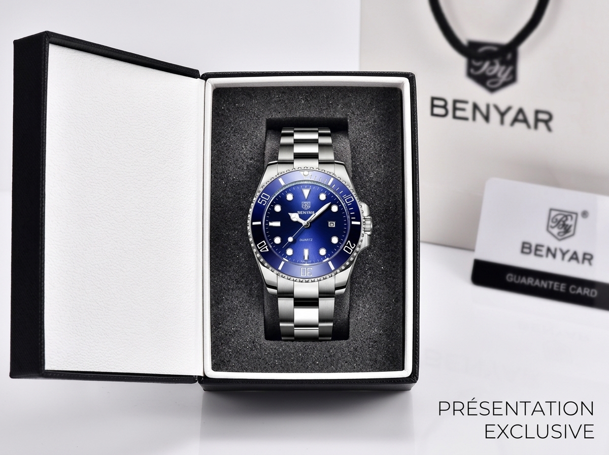 Plongez dans l’élégance avec cette montre BENYAR au cadran bleu éclatant, alliant la robustesse du style plongeur à la précision du mouvement à quartz. Son bracelet en acier inoxydable assure un confort et une durabilité exceptionnels pour un look résolument moderne.