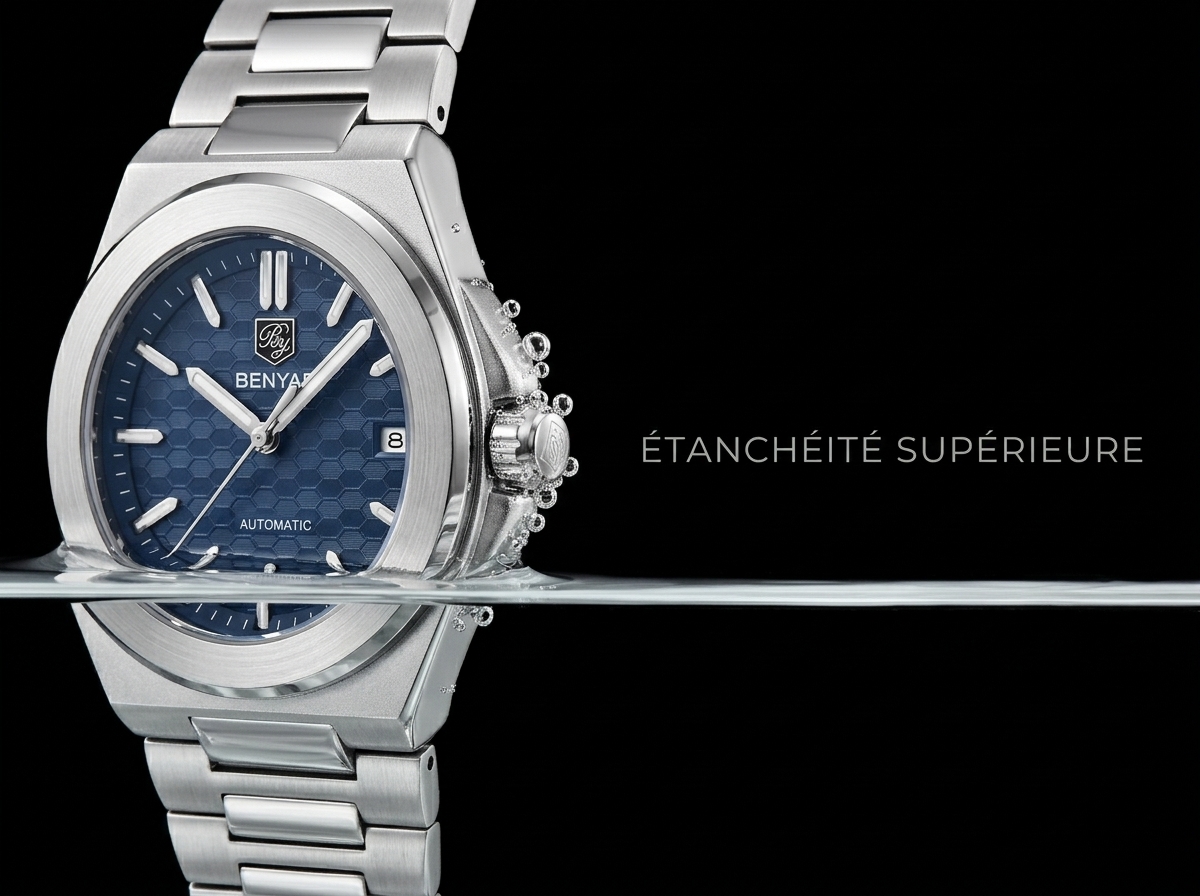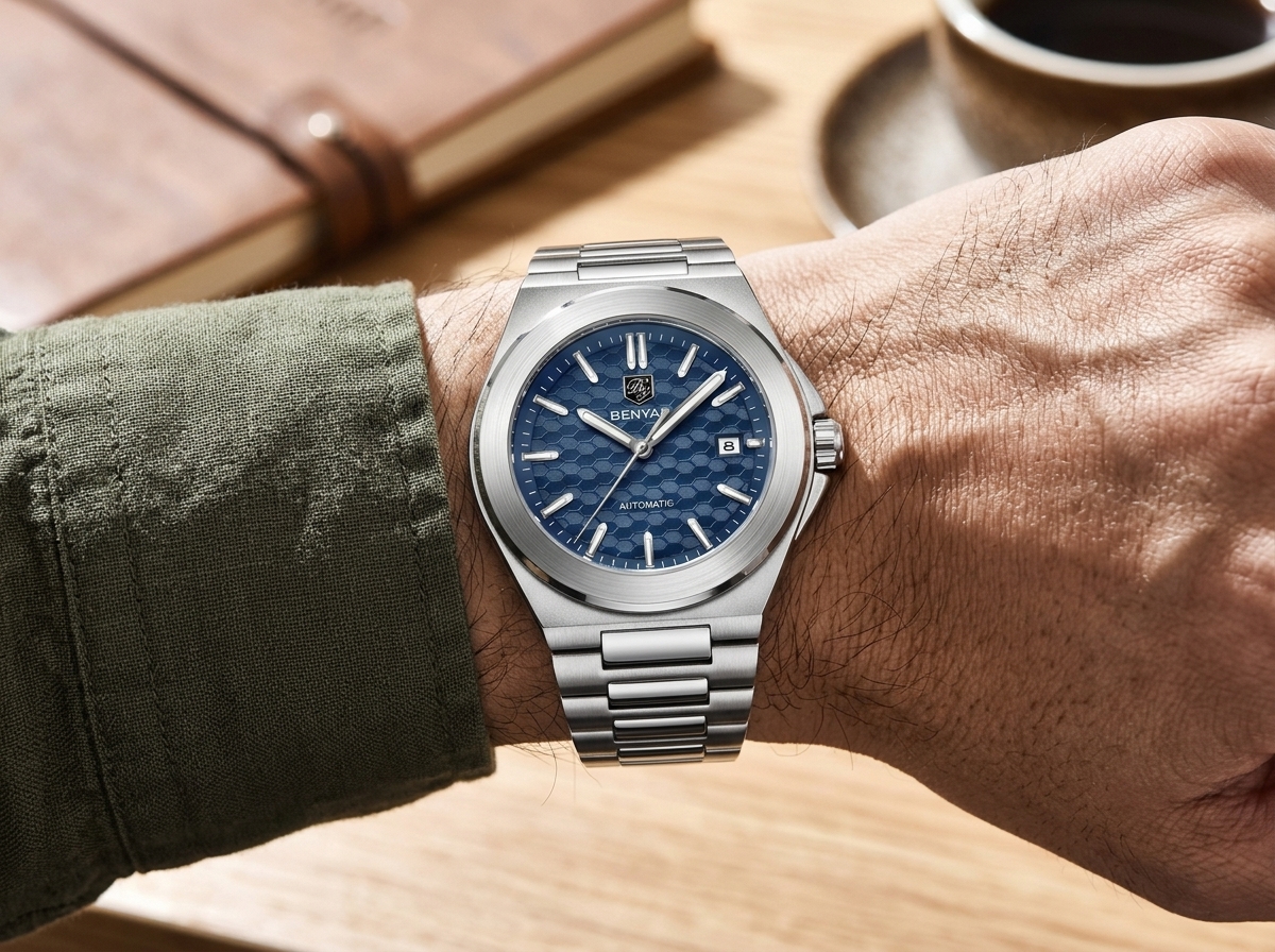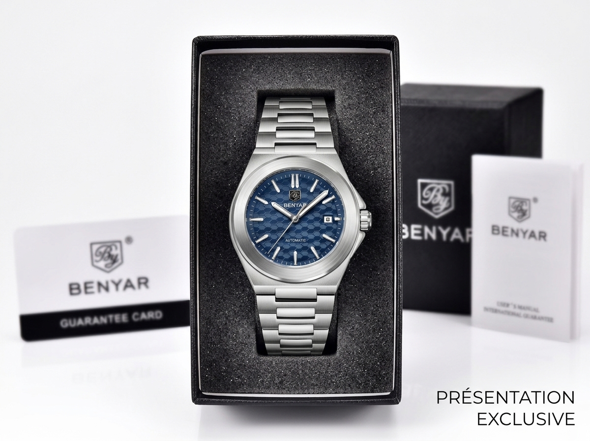Découvrez l’élégance audacieuse de cette montre automatique Benyar, alliant un design sportif raffiné à la fiabilité d’un mouvement mécanique. Son cadran bleu texturé hexagonal et son bracelet intégré en acier inoxydable en font un accessoire incontournable pour toute occasion.