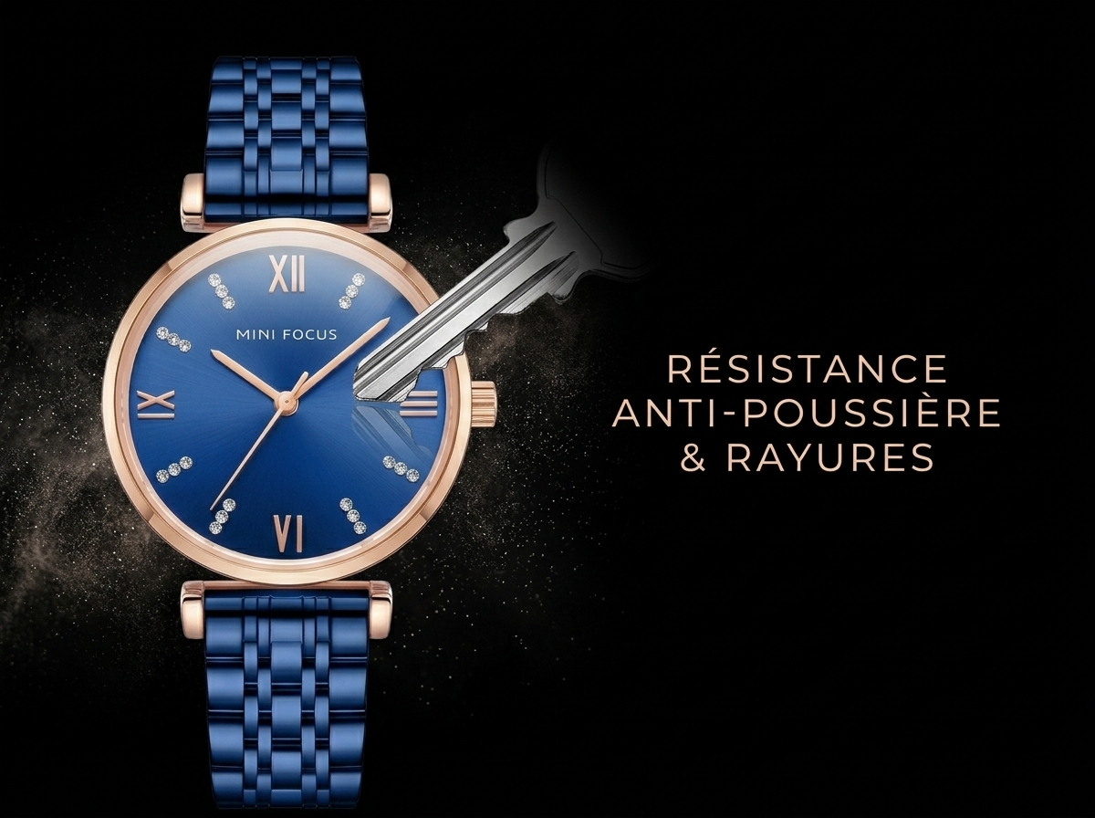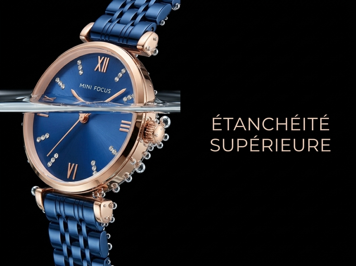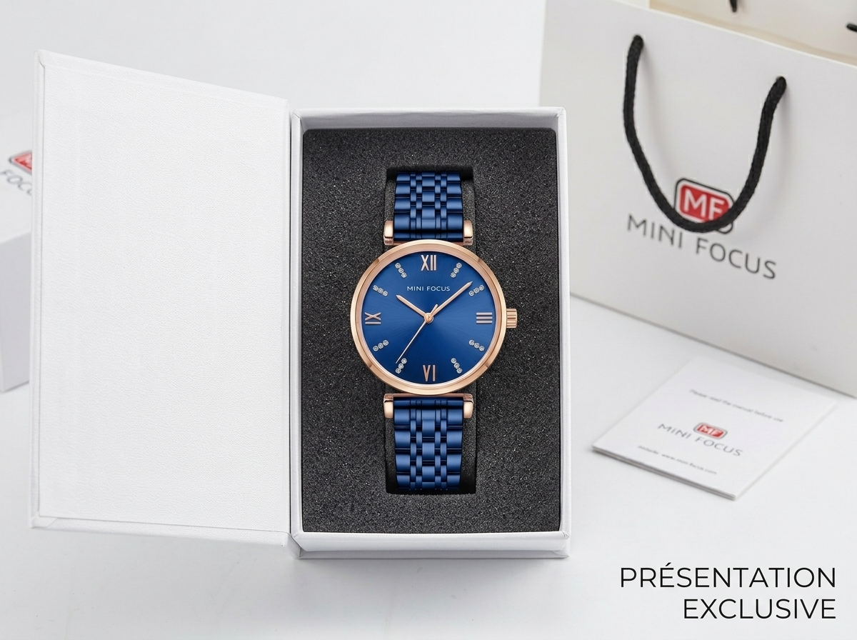 Découvrez la montre MINI FOCUS, une pièce d’élégance intemporelle qui illuminera votre poignet. Son cadran bleu profond soleillé et ses index en cristaux scintillants offrent un luxe discret pour chaque occasion.