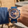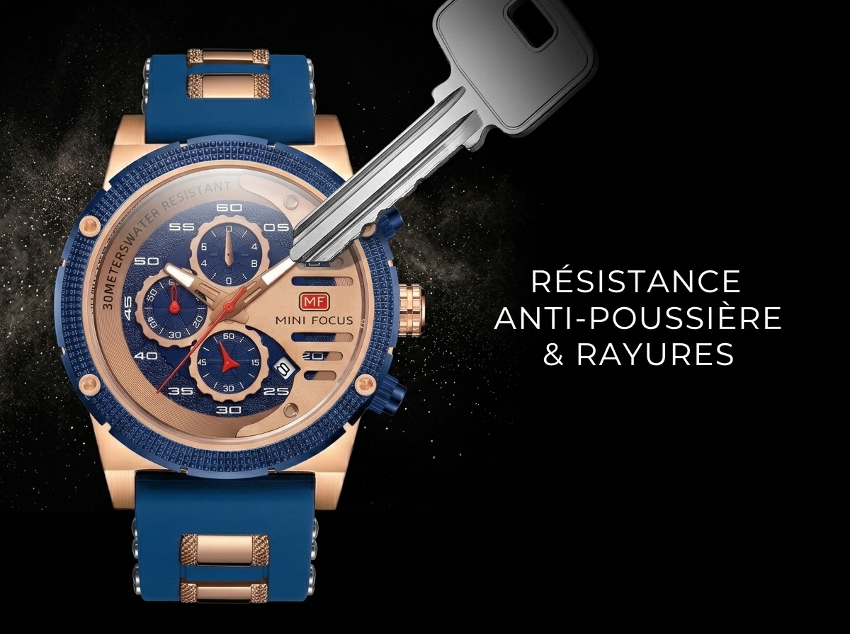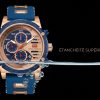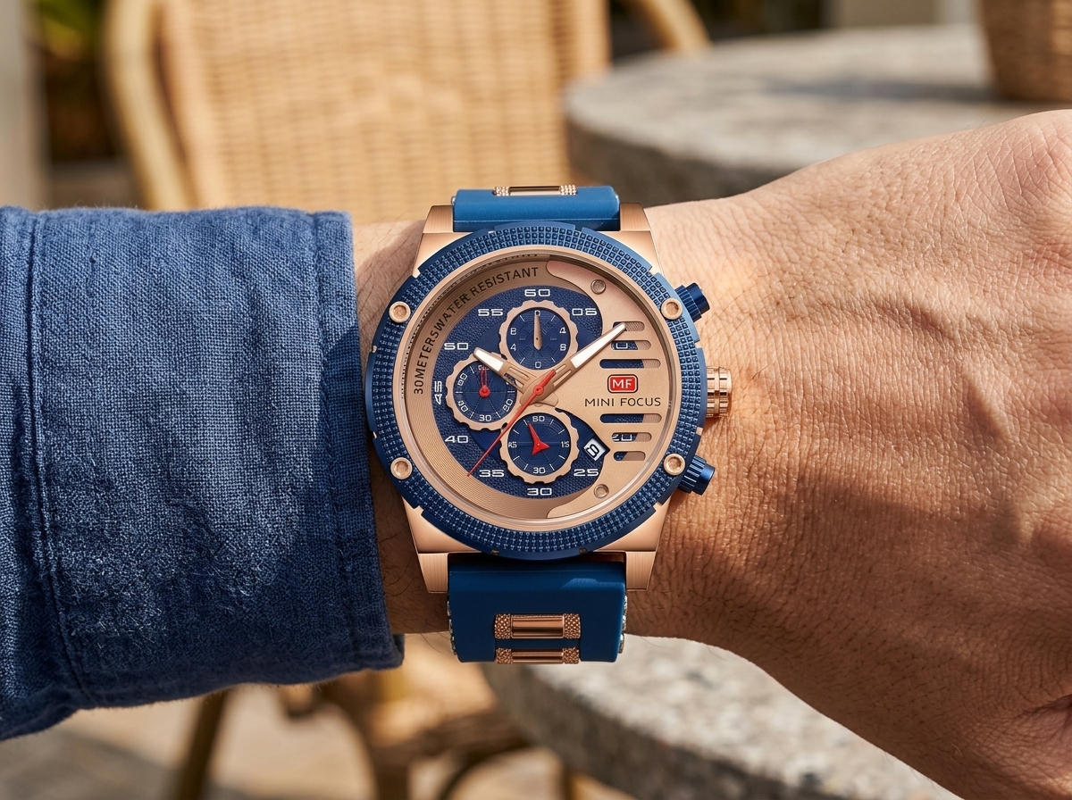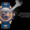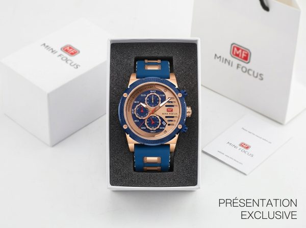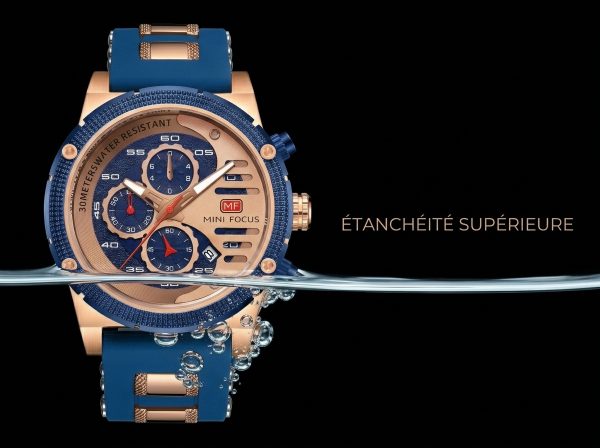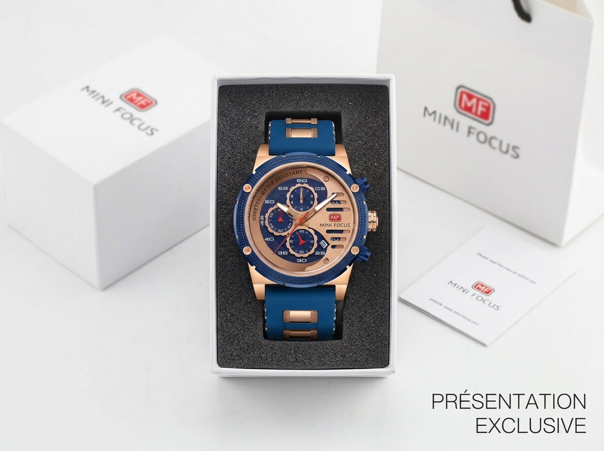Ce garde-temps audacieux allie la robustesse d’une montre sportive à l’élégance du rose gold et du bleu intense, créant un accessoire qui ne passe pas inaperçu. Idéale pour l’homme moderne qui valorise la fonctionnalité sans compromettre le style, elle est prête à vous accompagner dans toutes vos aventures.