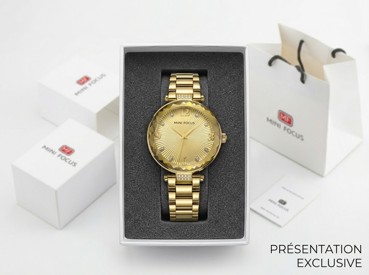 Sublimez votre poignet avec l’éclat intemporel de cette montre Mini Focus dorée, un véritable bijou d’horlogerie. Son cadran soleillé et ses index scintillants captiveront tous les regards, ajoutant une touche de sophistication à chaque instant.