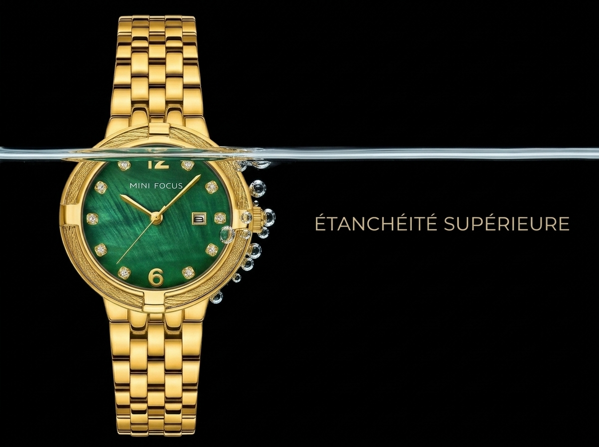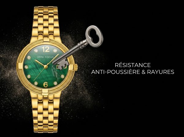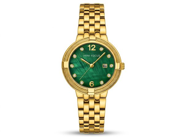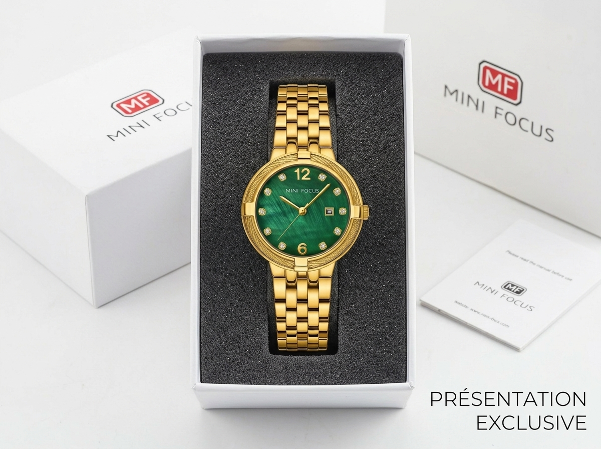 Découvrez l’élégance intemporelle avec cette montre MINI FOCUS, un véritable bijou au poignet. Son cadran vert émeraude orné de diamants et son boîtier doré en font l’accessoire parfait pour sublimer chaque tenue.