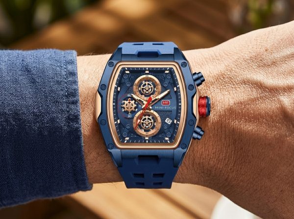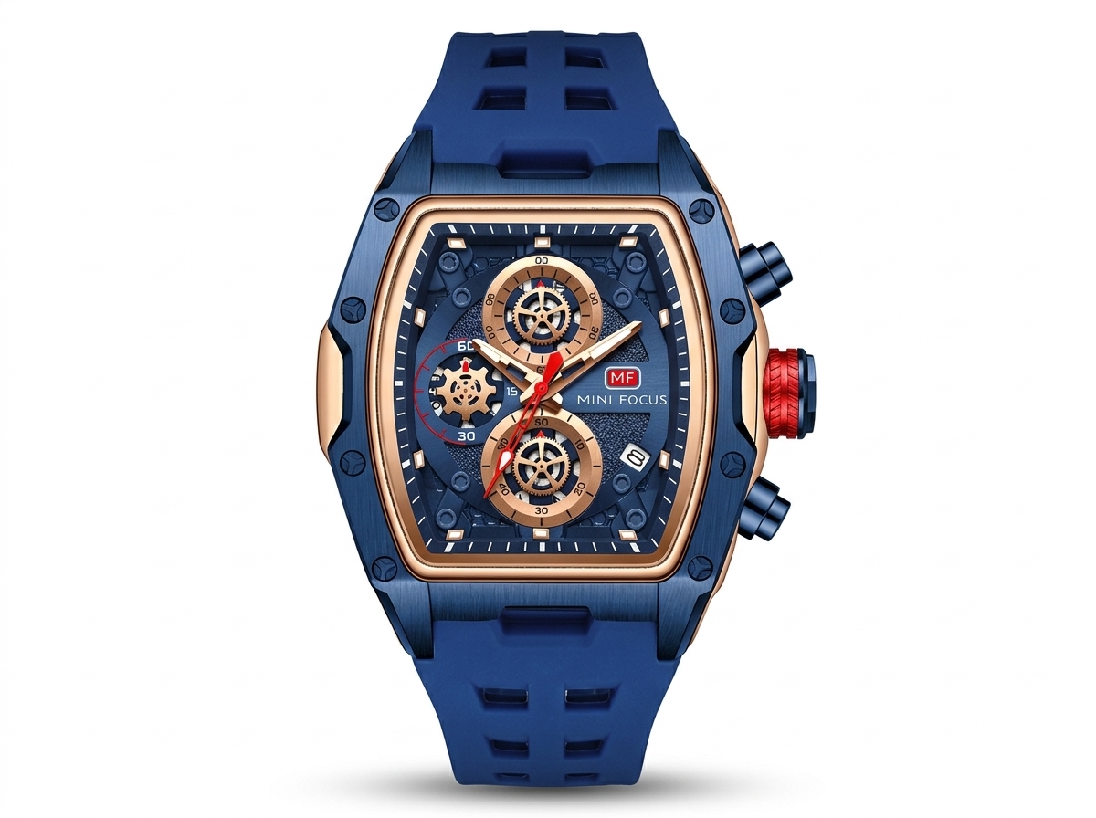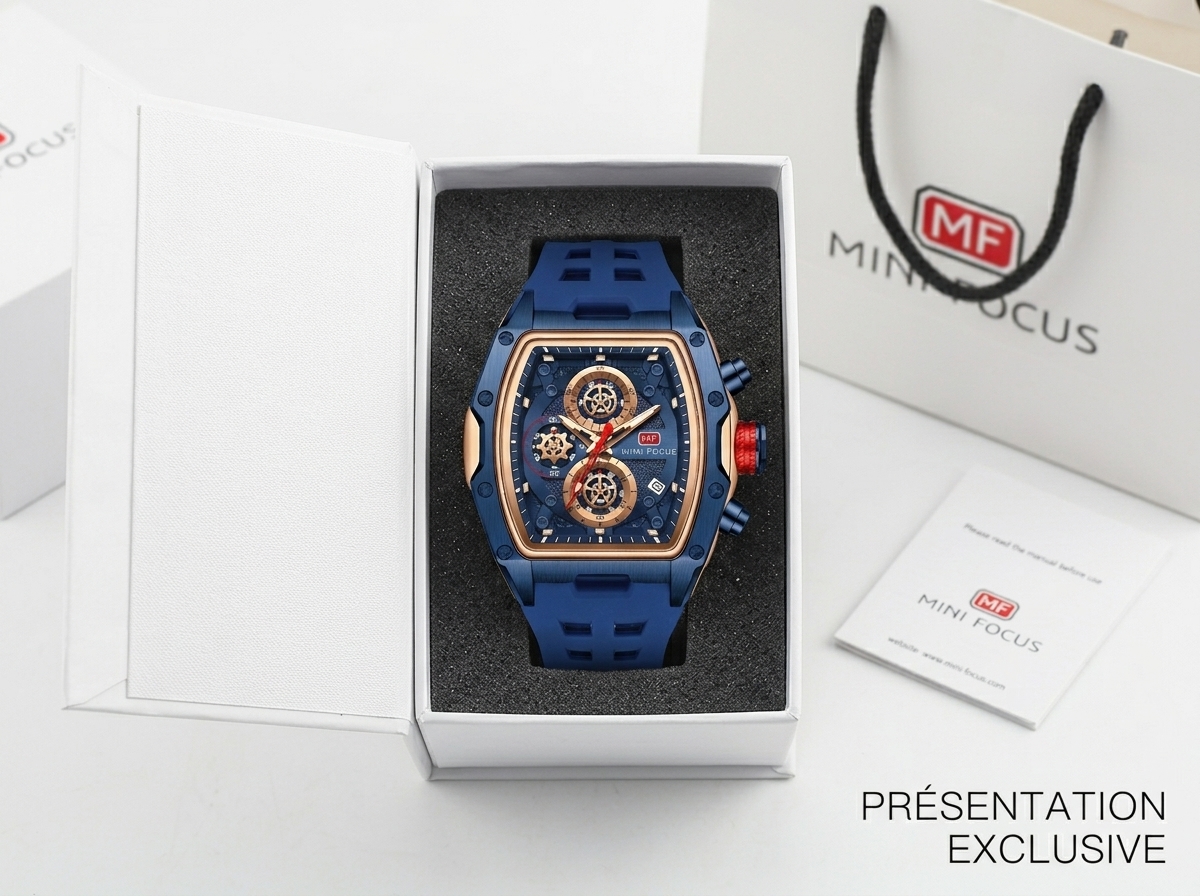 Découvrez la montre MINI FOCUS, une fusion audacieuse de design sportif et d’élégance moderne. Son cadran bleu texturé et ses accents or rose en font l’accessoire parfait pour l’homme dynamique.