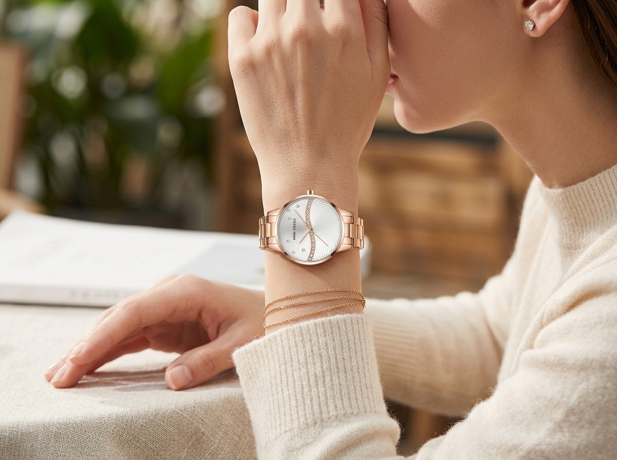 Élégante et raffinée, cette montre Mini Focus pour femme allie la brillance de l’or rose à un cadran délicatement orné de cristaux étincelants. Son design sophistiqué en fait l’accessoire parfait pour sublimer chaque tenue, du quotidien aux occasions spéciales.