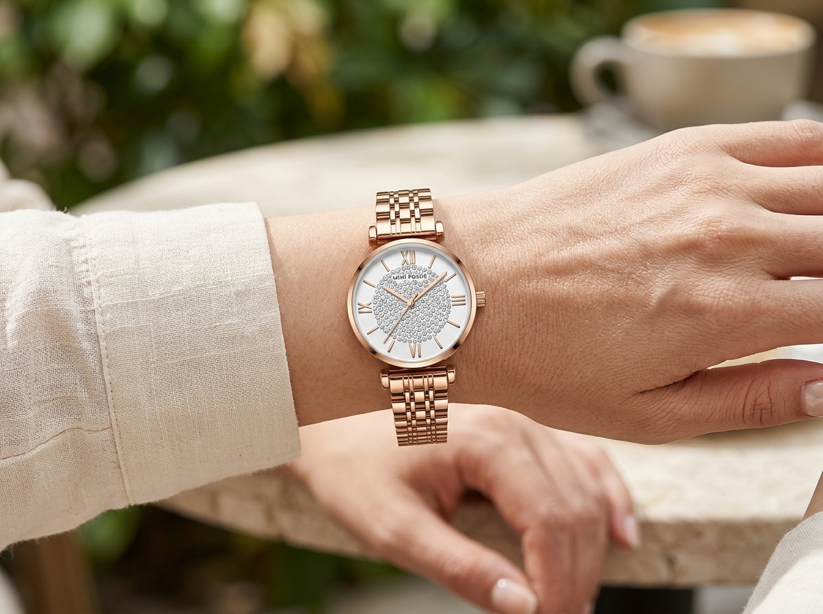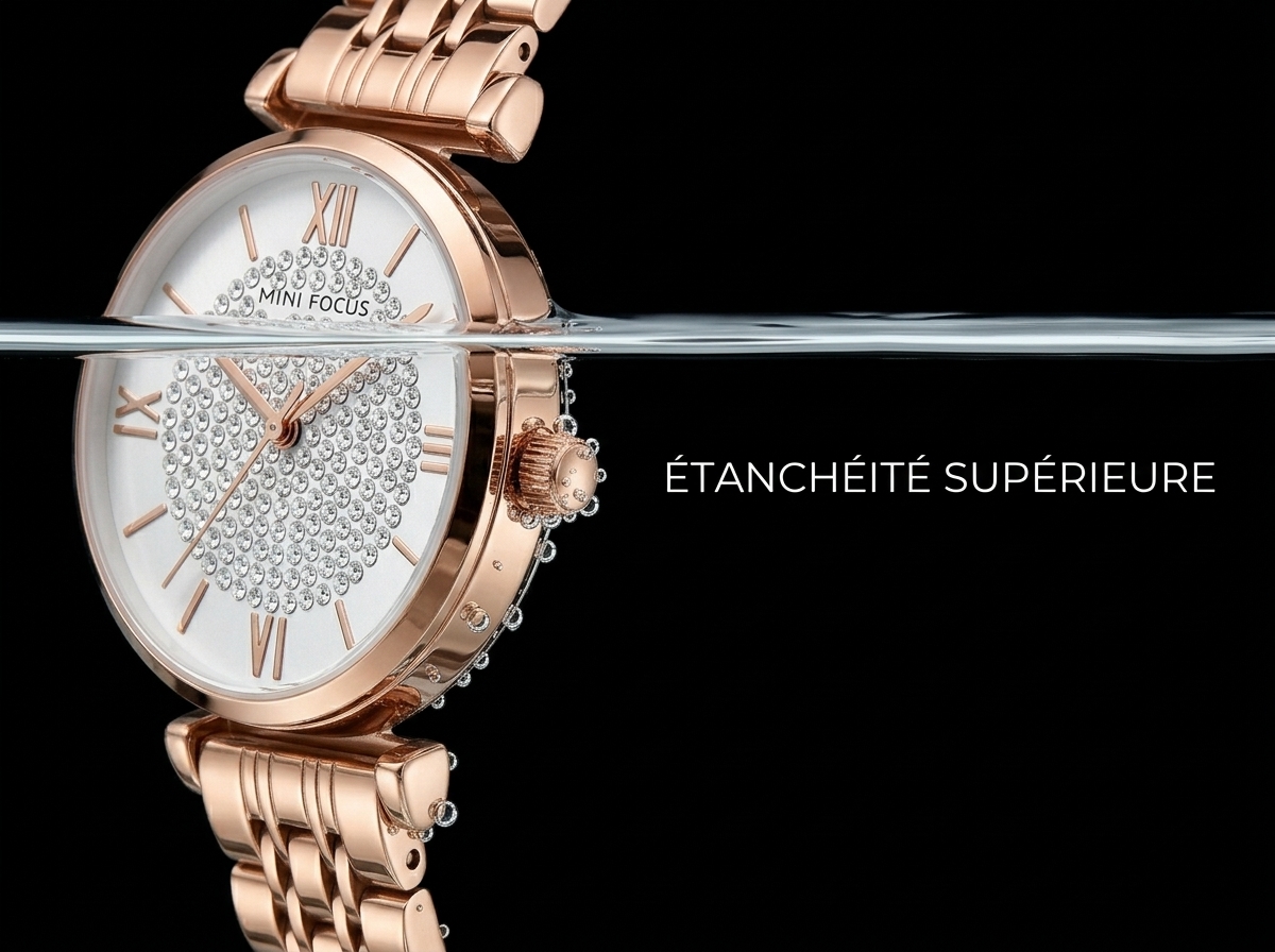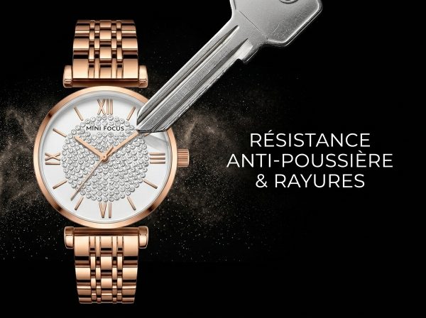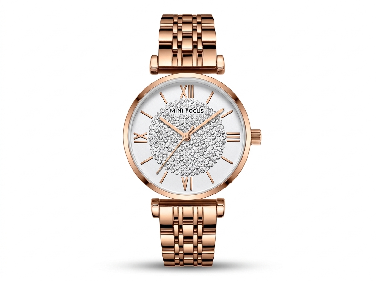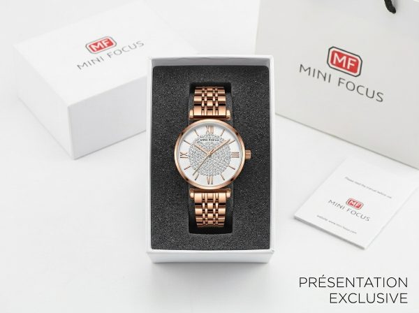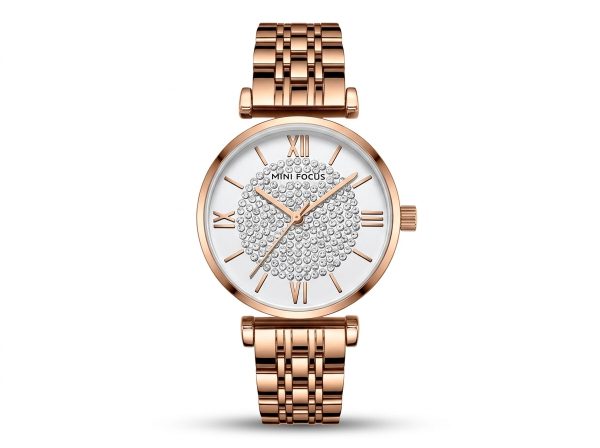 Laissez-vous séduire par l’élégance intemporelle de cette montre MINI FOCUS, ornée d’un boîtier et d’un bracelet en acier inoxydable couleur or rose. Son cadran immaculé, parsemé de cristaux scintillants et d’index romains raffinés, en fait l’accessoire parfait pour rehausser chaque tenue d’une touche de glamour.