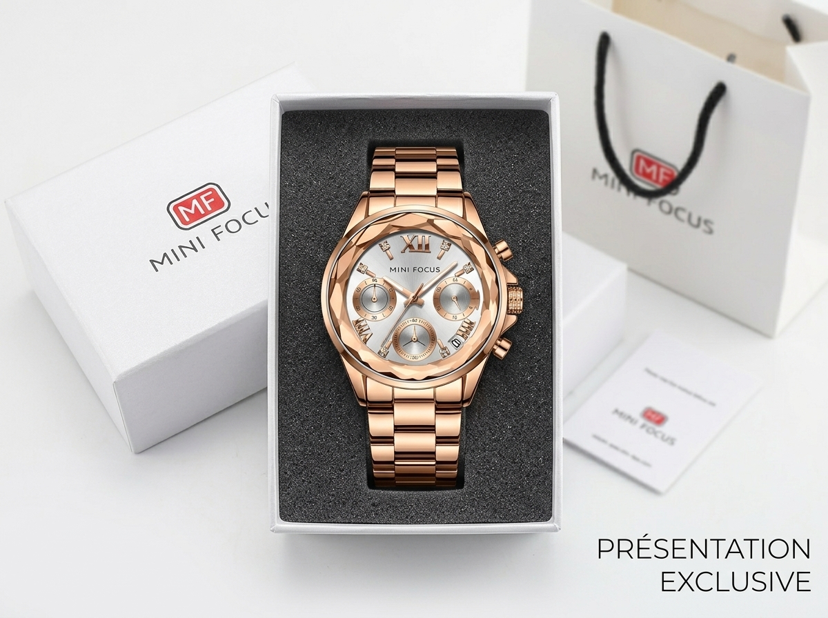 Élégante et sophistiquée, cette montre MINI FOCUS en or rose est un accessoire incontournable pour toute garde-robe. Son design chic et ses fonctions chronographe en font le parfait mélange de style et de praticité.