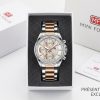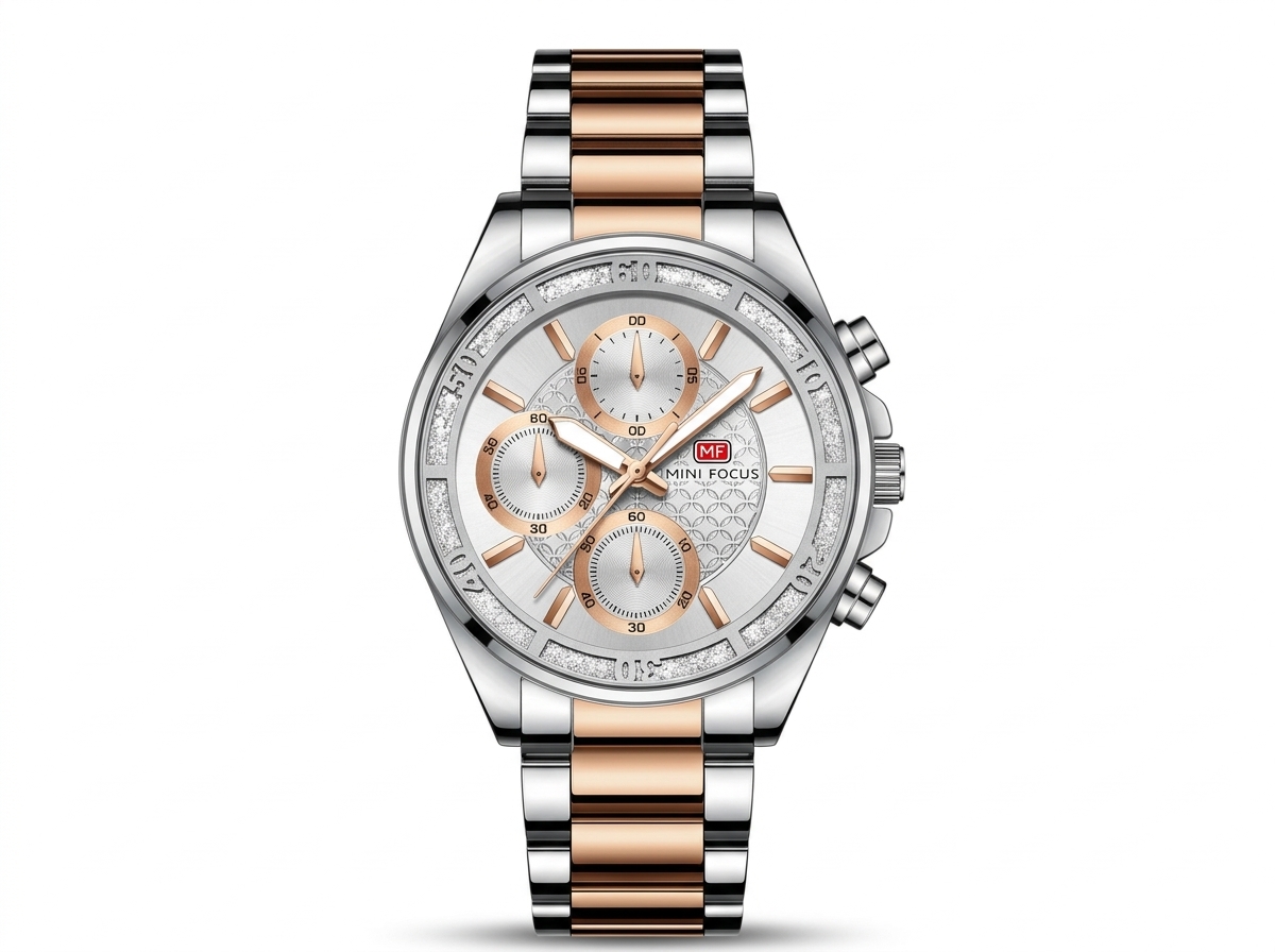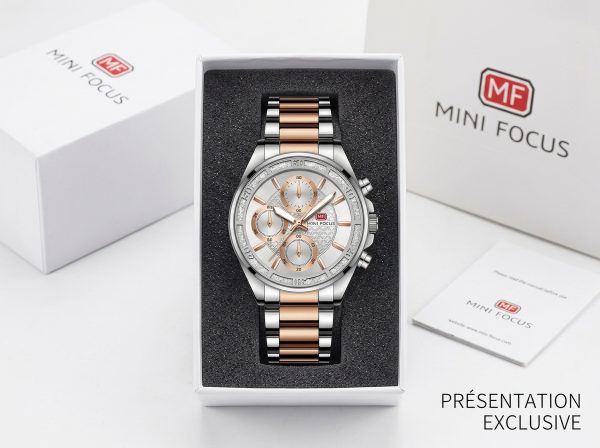 Découvrez l’élégance intemporelle de cette montre chronographe bicolore, mêlant l’éclat de l’acier argenté à la chaleur de l’or rose. Son design sophistiqué et ses fonctionnalités précises en font l’accessoire parfait pour rehausser chaque instant.