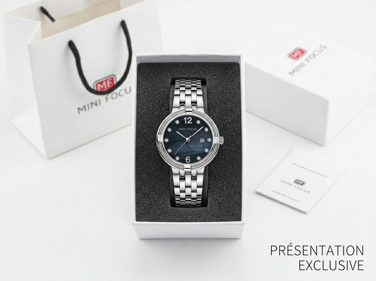 Découvrez l’élégance intemporelle avec cette montre MINI FOCUS, un accessoire raffiné pour sublimer chaque instant. Son cadran nacré orné de diamants scintillants et son bracelet en acier inoxydable poli offrent une touche de luxe discret à votre poignet.