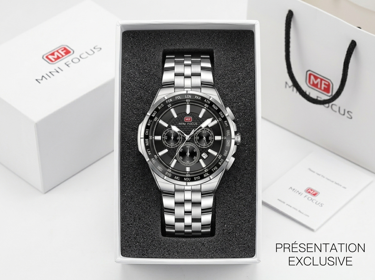 Découvrez l’élégance audacieuse de cette montre chronographe MINI FOCUS, conçue pour l’homme moderne. Son design en acier inoxydable et son cadran multifonction en font l’accessoire parfait pour toutes vos aventures, qu’elles soient quotidiennes ou formelles.