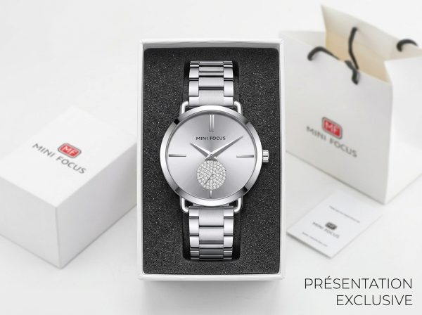 Découvrez l’élégance minimaliste de cette montre MINI FOCUS, un accessoire intemporel qui rehaussera chaque tenue. Son cadran argenté sublimé par un scintillant sous-cadran incrusté de cristaux apporte une touche de sophistication discrète à votre poignet.