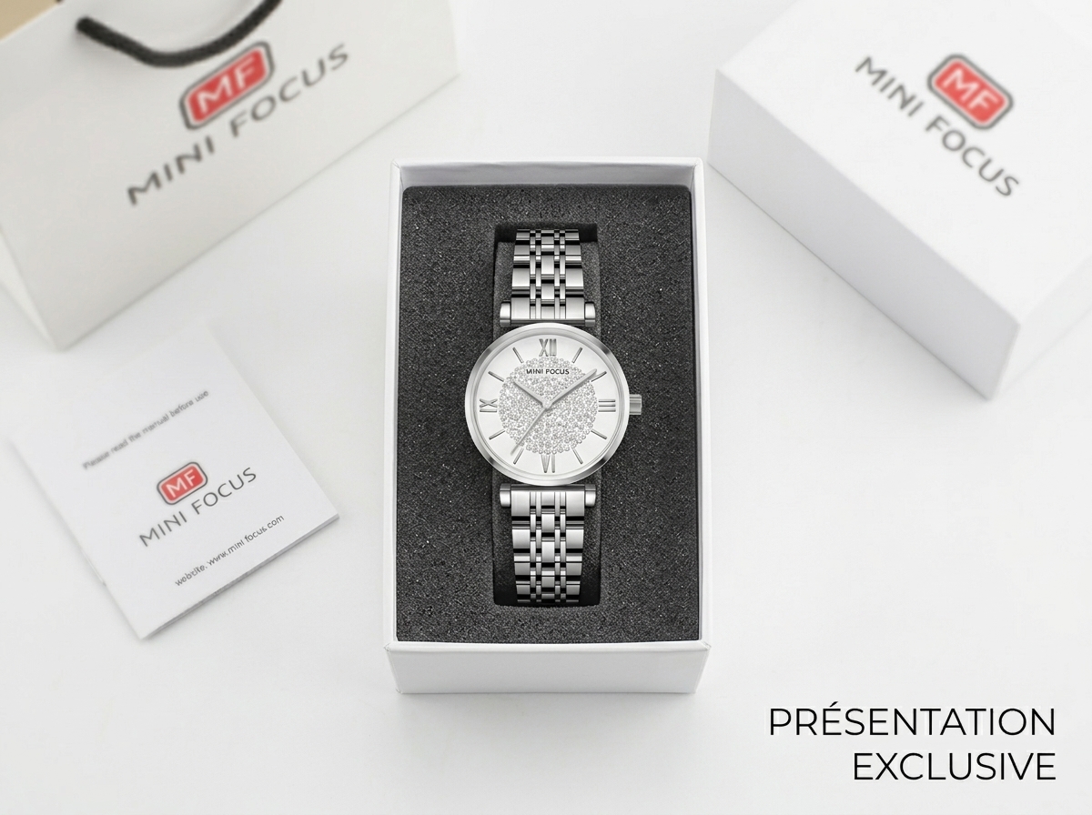Éblouissez avec cette montre MINI FOCUS, alliant la sophistication du bracelet en acier inoxydable poli à un cadran scintillant de cristaux. Parfaite pour sublimer chaque tenue, elle est l’accessoire indispensable pour une élégance intemporelle.
