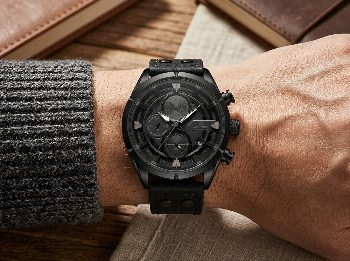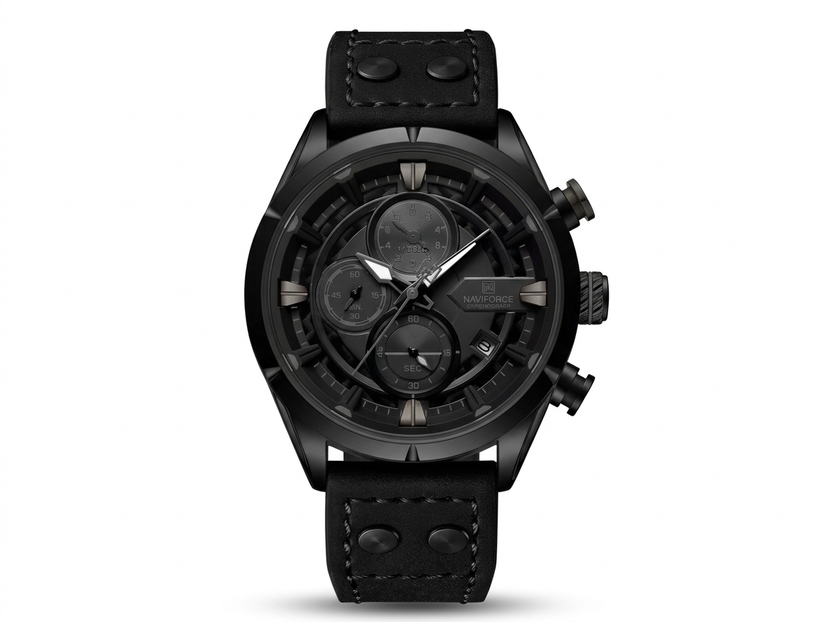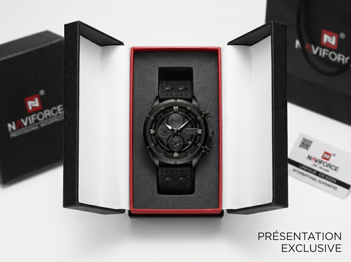 Découvrez la montre Naviforce Chronographe, un chef-d’œuvre de design entièrement noir qui allie robustesse et élégance. Son cadran sophistiqué et ses fonctions chronographe précises en font l’accessoire idéal pour l’homme moderne et actif.